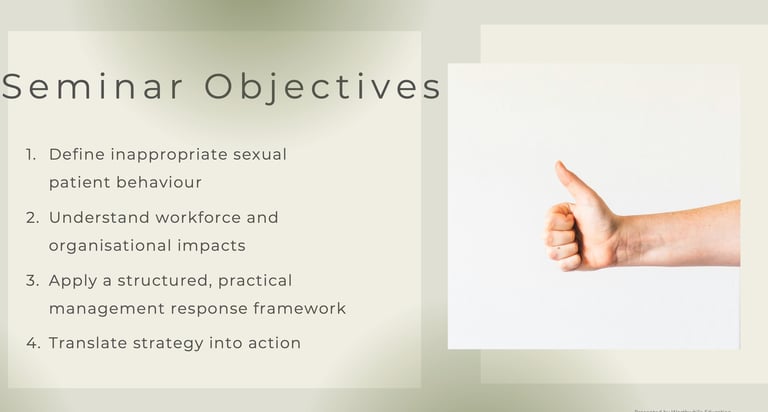 Proactive training is one way to begin developing compliance strategy and providing positive duty for employees who are at risk of sexual harassment by patients.